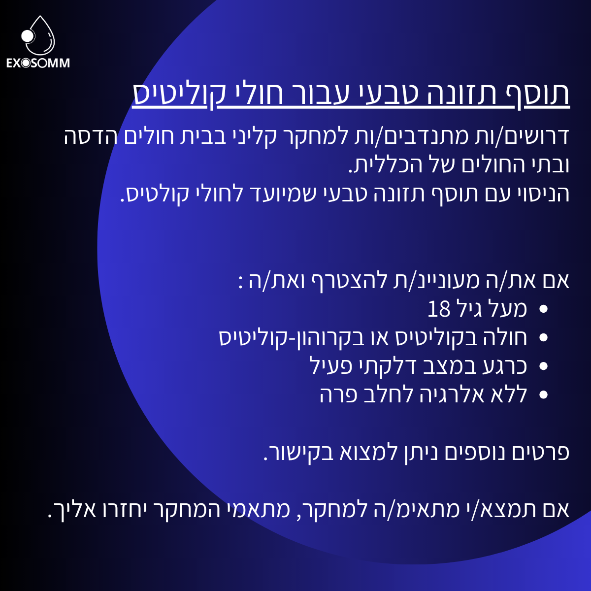 EXOSOMM פיתחה תוסף תזונה חדשני – אבקת חלבון מי גבינה מועשרת באקסוזומים טבעיים ופעילים שמקורם מחלב, ושנמצאו במחקרים כבעלי השפעה אנטי-דלקתית ברמת הציטוקינים בתאים, ויכולת לקדם ריפוי רקמות ולסייע במניעת בבעיית leaky gut.