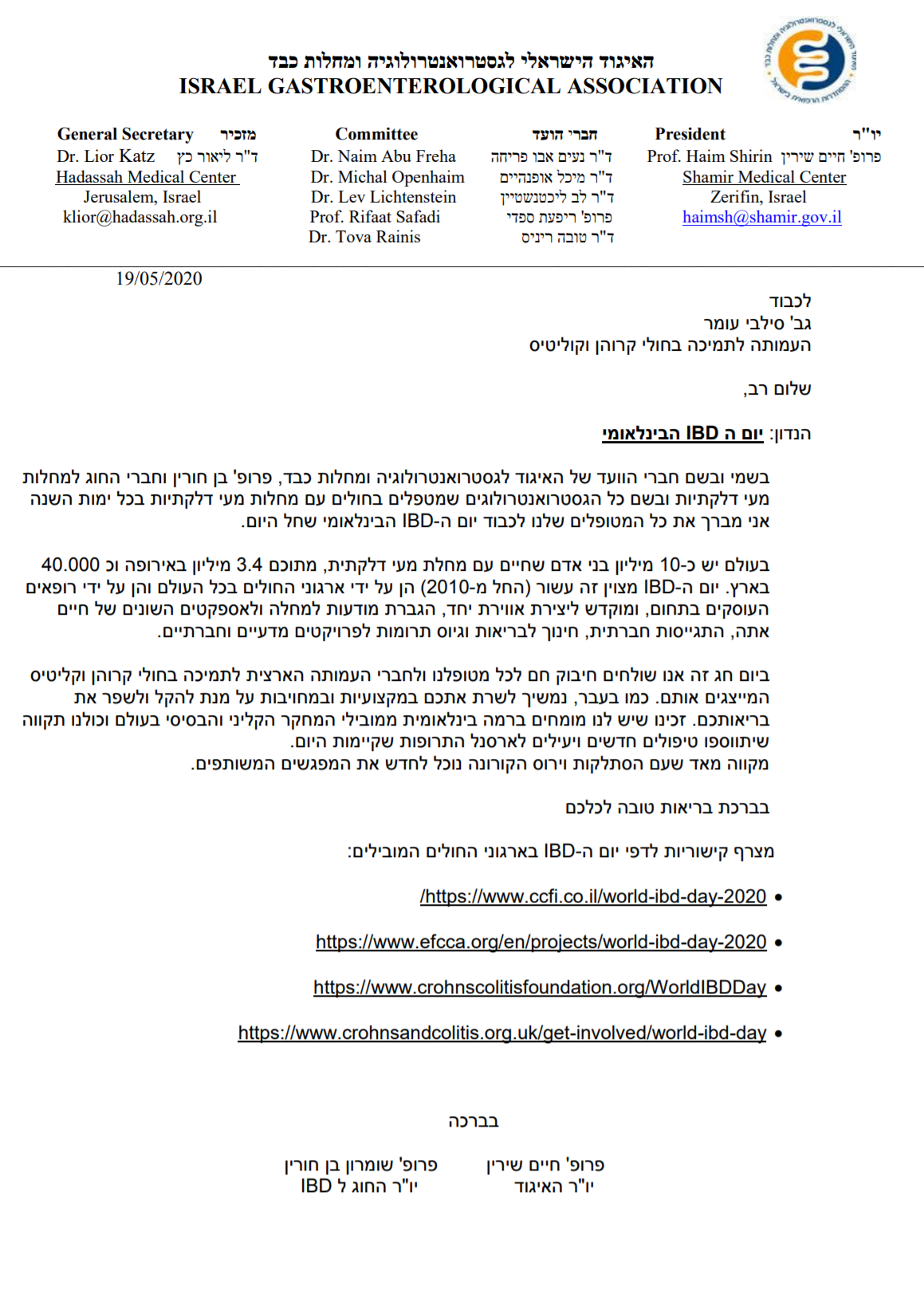 ברכת איגוד הגסטרו הישראלי והחוג למחלות מעי דלקתיות